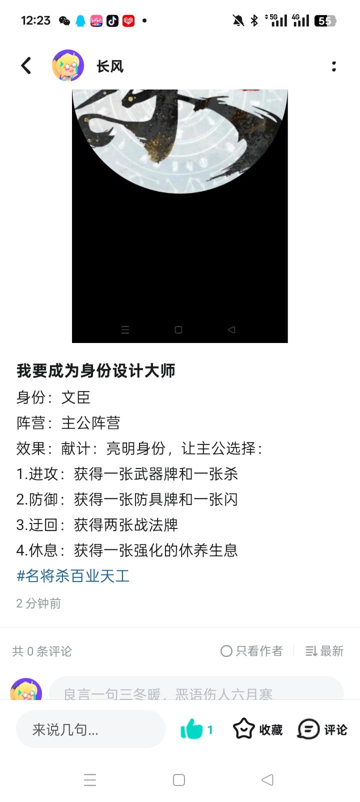 #名将杀百业天工 #名将杀 身份代号:卧龙阵容属性:其他阵容获胜条件:游戏开始时,你进行一次推演,推演所有玩家的阵亡顺序,当三名玩家的阵亡顺序与你的推演结果相同时,你获胜身份效果:游戏开始时,你暗中进行推演,然后获得技能隆中对隆中对:当一名角色死亡时,你亮明身份,你推演成功时恢复一点体力并摸两张牌,推演失败时失去一点体力并随机弃置两张牌,当你推演失败三次时,你立即阵亡设计思路:类似刺