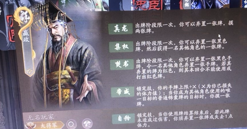 曹魏阵容三血六手牌上限一技能存身:免疫战技卡。受伤后移除该技能获得“乱武”。乱武:冻结闪。其他玩家使用桃时你可以销毁该卡牌并为其添加流血、中毒。有其他玩家进入重伤你选择一名回复一血和手牌上限。