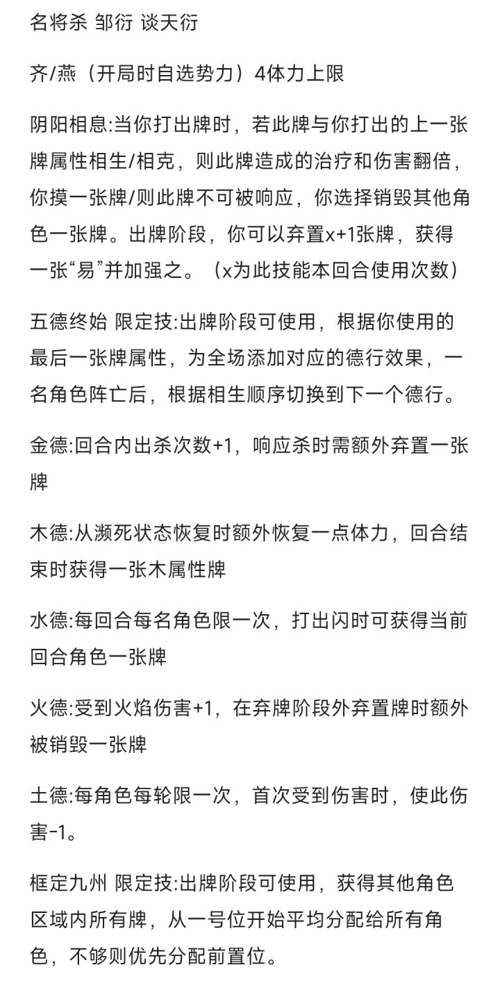 名将杀设计:邹衍