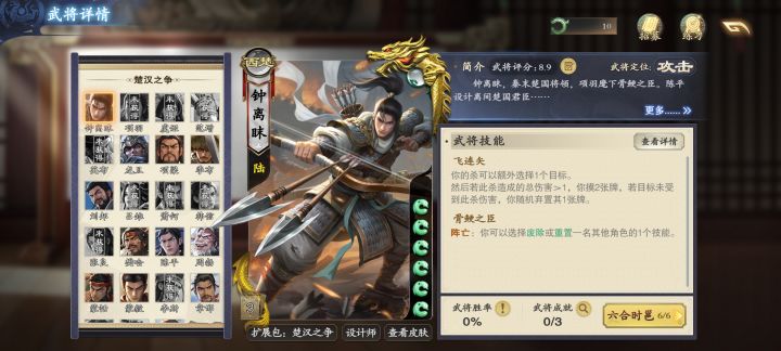 有的兄弟玩千里走单骑总是打不过,第一关就跪了,所以我这边做一个攻略(没做过什么游戏攻略,大家凑合看看吧)可以看到这个规则,里面最重要的规则就是最后一条,速度属性,速度越快出手越快我图上选择的武将是钟离昧,我主要也用的他,现在已经是第四关了,后面可能会有更合适的将这个游戏的武将有一个设定就是战役属性,这些战役属性可以用来加点,点速度阿,杀的伤害,战法伤害啥的,所以我们需要一个高阶的将,而现在这