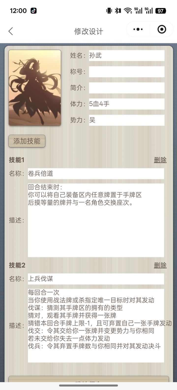 之前弄了一版孙武感觉鸡肋,今天临时起意加强了一下#名将杀diy