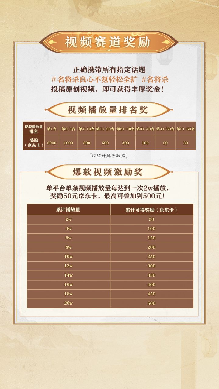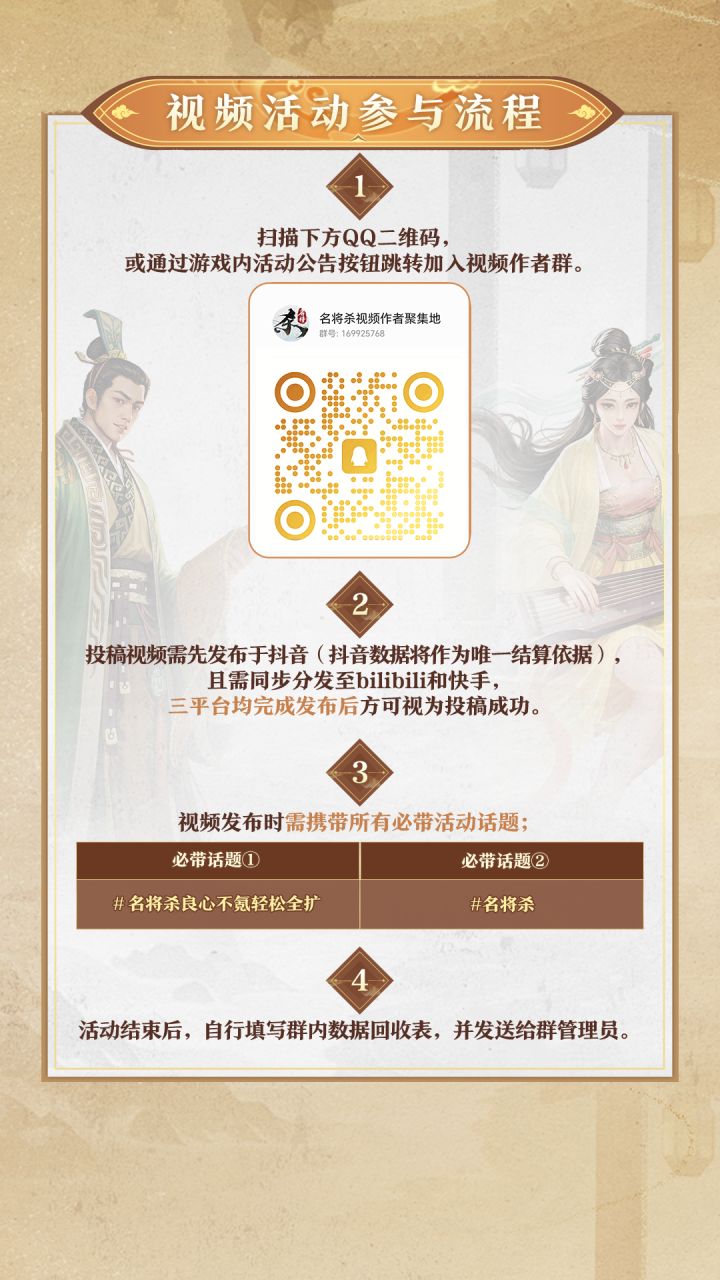 进行《名将杀》游戏直播或发布游戏相关视频,单人最高可领8000元!还有活动限定至臻手牌皮肤「楮墨生春」等你来拿!