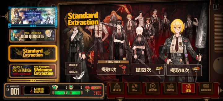 联动入坑补:联动时间9.25~10.23奔联动来的玩家,建议买初始(自抽号),建议购买狂气+抽卡卷总和>500抽的号。(130狂气一抽,单抽卷和普通十连卷均可以在联动中使用。)主线有3w+狂气,加上联动活动的资源兑换,每周的奖励,完全溢出不用担心。联动的四个EGO一个送,三个抽,满打满算600抽,400抽有9成的概率拿全,建议总资源500抽以上,也好平衡游戏肝度。后续攒着抽瓦夜或者一直囤到巴