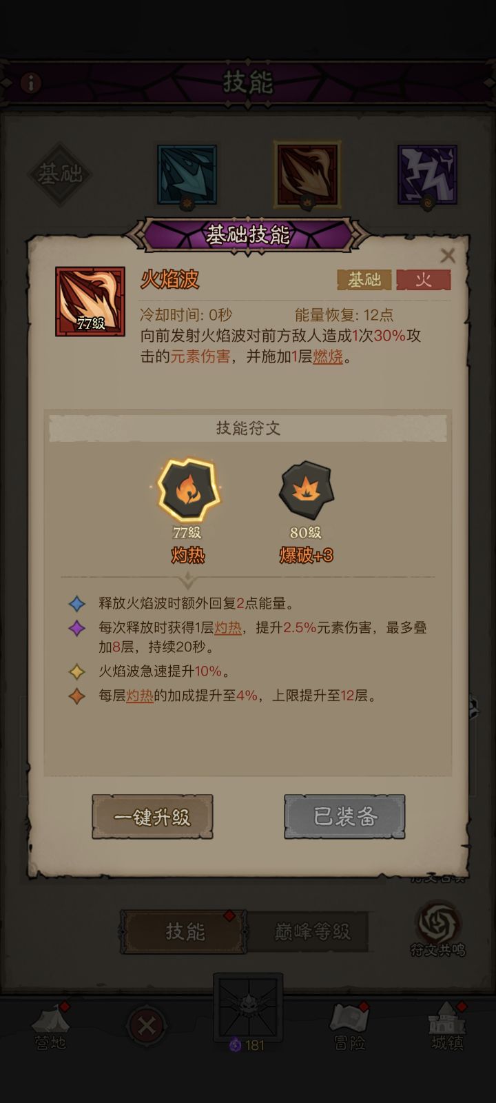 点我看往期攻略攻略讨论裙:1009514497 一、技能搭配基础技能:火焰波-爆破核心技能:寒冰光束-火眼掌控技能1:闪现-背刺掌控技能2:冰霜盾-熔火终极技能:冰雹-天火被动技能:强盛-能量亲和-唤法二、暗能装备武器:巫妖之骸(命中敌人有25%概率生成一颗随机元素飞弹对敌人造成30%攻击的元素伤害,并恢复1点能量。这里高频伤害触发回能,跟前面核心技能火眼呼应,回能就放火眼,放