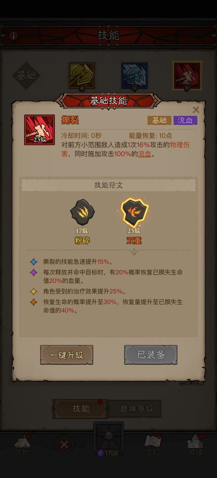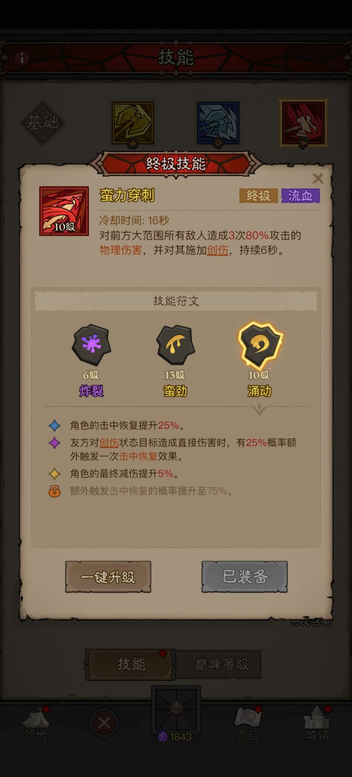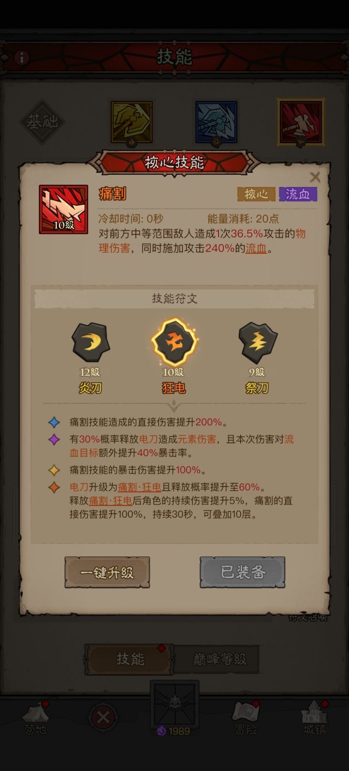 仅分享核心技能和装备,其他根据各位实际情况调整。1.原理:强化生存,高叠易伤。2.核心装备:无敌鞋(必备),加速斧头(优选)3.核心技能:威吓怒吼(必备),薄发狂战(必备)