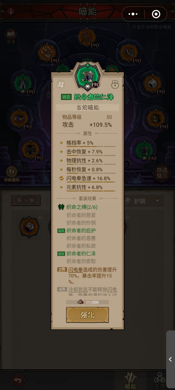 #英雄没有闪攻略 电割十层伤害提升非常夸张,而且流血带来的伤害也非常的可观,但是很多人觉得叠加慢,打BOSS时间有限,这里就不得说一下电割的最重要的一点,那就是无限能量。电割有三件非常重要的暗能装备,第一件就是血吼战符,它能让你在释放终极技能时加50点能量和50点能量上限,第二件混沌风暴,穿刺技能作为终极技能本身就只有16秒的冷却,有了这件装备可以把它的冷却降低到5-6秒,到这里基本就可以形成无