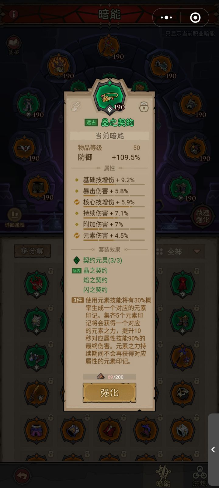 分享一下我自己的一些装备搭配,欢迎交流。目前战力:70亿(萌新,很菜)主线:49-1(316.77亿,还能继续推,但没体力了,最高记录越5倍战力)暗能秘境:117一、装备搭配裤子:虚空之胯腰带:虚空之腹/劫后复生衣服:织命者的庇护帽子:恶灵之颅武器:命运交织护肩:元素扰乱护腕:诡谲烙印/恒星纺锤手套:虚空之臂鞋子:织命者的仁泽饰品:晶之契约、炎之契约、闪之契约(即“契约