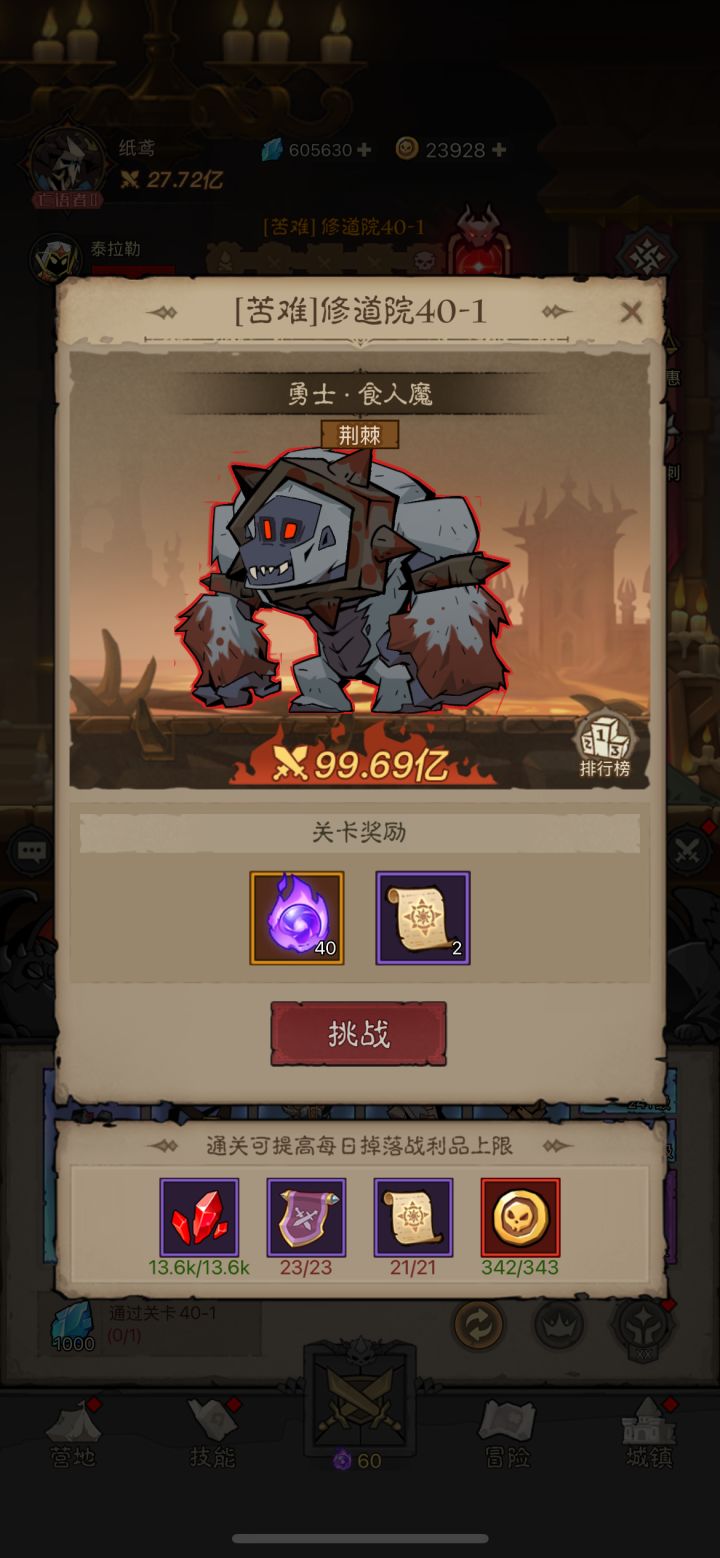 可越5倍战力打挑战,概率同时存在3个带传奇原力锤技能的蛮灵,蛮力穿刺打出去能秒回几千万血。#游戏攻略