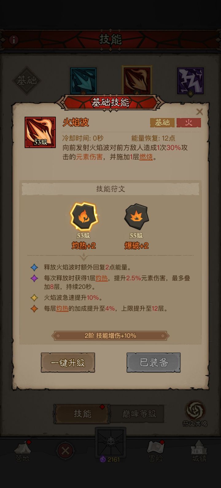 点我看往期攻略攻略讨论裙:1009514497一、技能搭配基础技能:火焰波-灼热(回能、叠燃烧;后期元素伤害拉高了后可以换成爆破,快速叠加易伤)核心技能:火球术-炎爆(传奇符文)掌控技能1:震荡-回响/引力场-黑洞(回响提高回能;黑洞 当带有不灭侍从在前面抗伤的时候在侍从旁边扔黑洞快速聚怪,这样一个怪上的炸弹引爆能炸多个怪)掌控技能2:魔焰花-火蕊(提升伤害,叠燃烧)终极技能:冰雹-