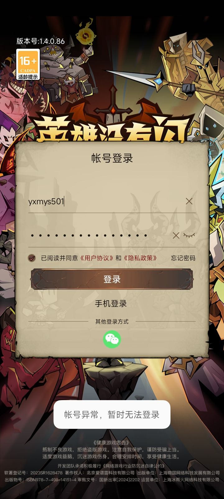 账号使用情况如下1. 是否为自建号?是2. 是否使用过脚本?否3. 是否使用过加速器?否4. 是否使用过模拟器?否5. 最高越战几倍?约2.5倍6. 最近下线前越战几倍?约2.1倍7. 经常何种下线方式?切后台杀进程