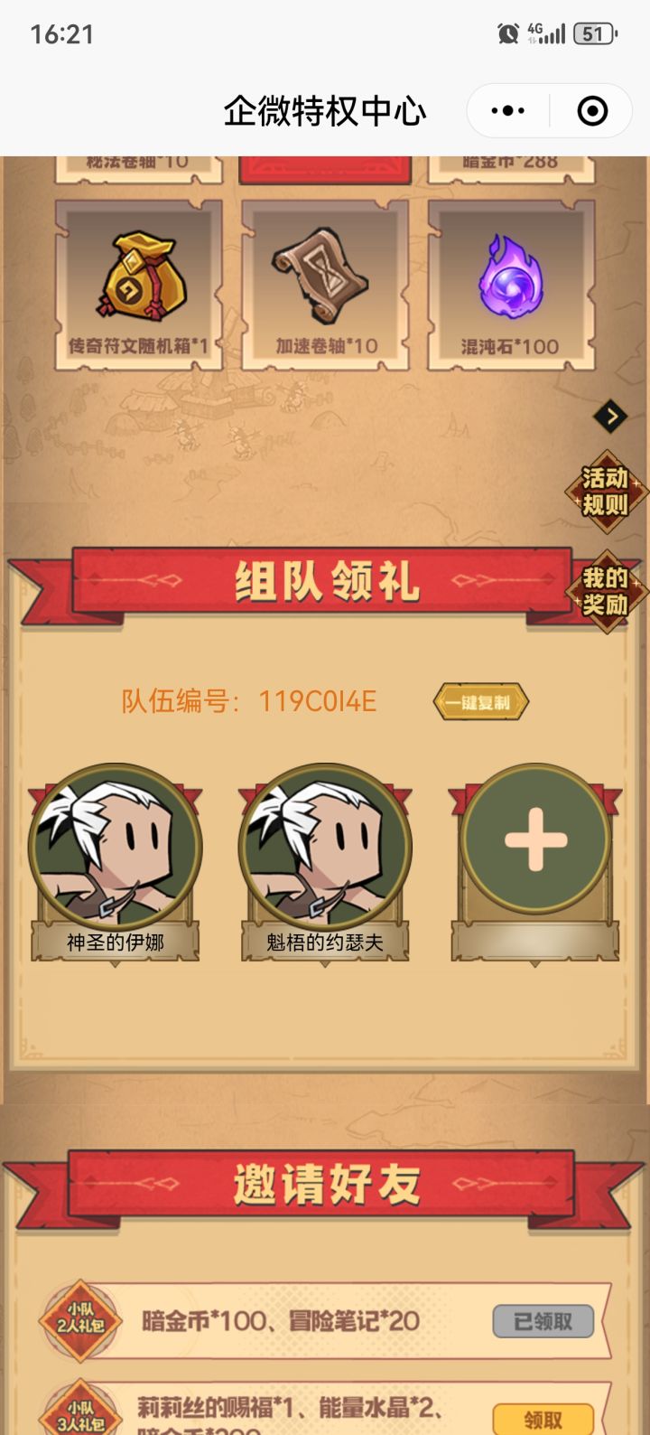 微信公众号组队拿奖励啦 二缺一