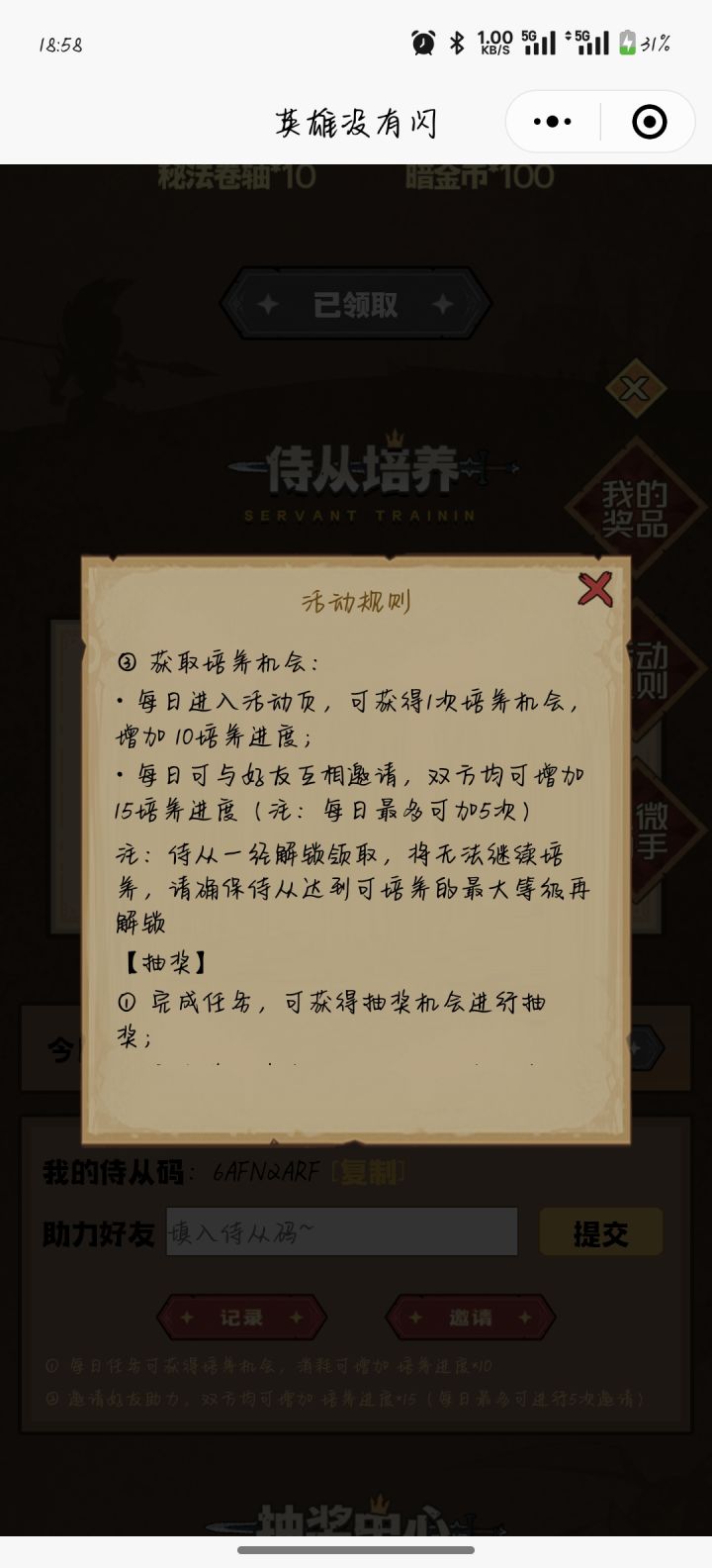 我的侍从码是:6HPSCLTO,进入活动为我助力~