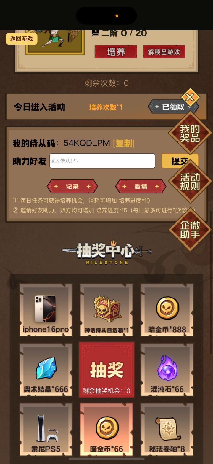 我的侍从码是:53ZJRDE3,进入活动为我助力