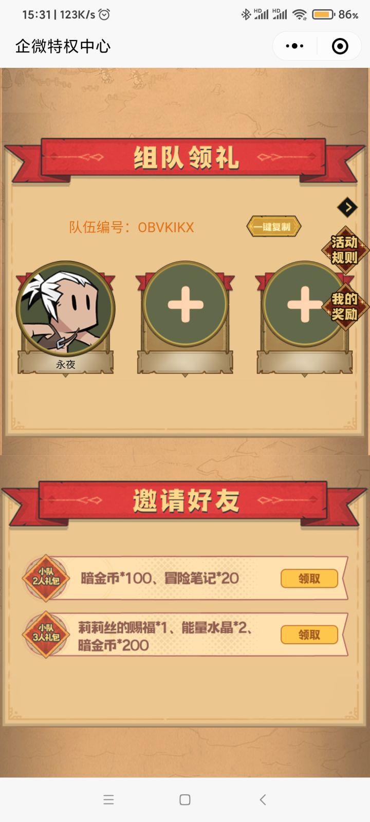 我的队伍编号:NX9R9GL, 快加入我的队伍~,企业微信特权中心。