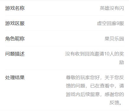英雄没有闪官方,你的不作为正在毁掉这个游戏。我与2025年9月13日领取邀请回流玩家奖励,领完后发现并未到账,同时第一时间与客服反馈问题并于第2天也就是9月14日一直找寻人工客服才得到回复处理结果就是这样?让玩家在游戏中后续留意?意思就是能发我们就找个时间补发,不想弄了就一直摆烂?反正也没有告知玩家具体补发时间,那就一直耗着玩家呗?本人由于14号又向游戏客服反馈了该问题,要求明确整改时间可