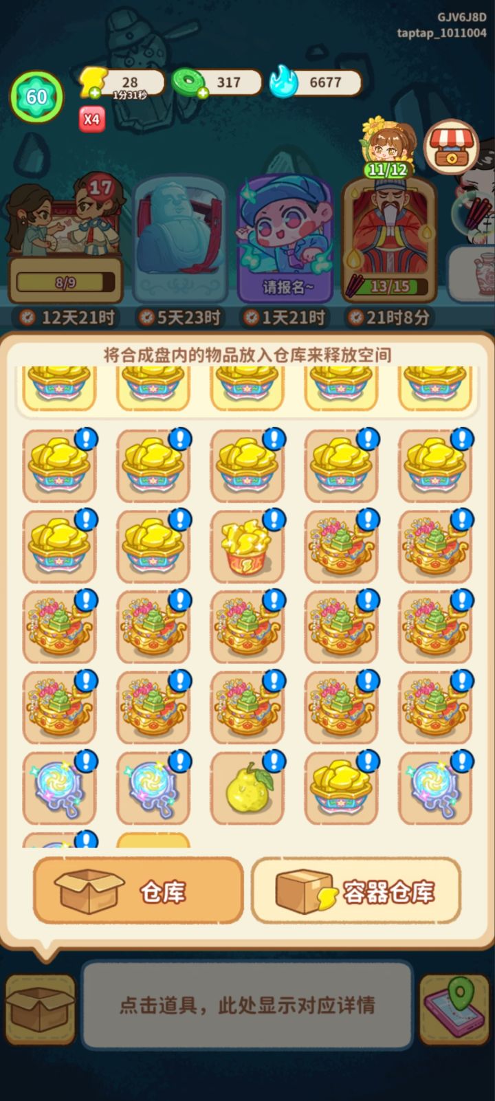 玩家ID: 23EJU19 设备型号:小米14 设备系统版本:OS版本 问题发生时间:12月20日 8点40分左右 问题描述:开了免广后,没有给我五个仓库格子,在这之前我已经开了五格仓库了,之后把物品放仓库后仓库里东西全部消失,有视频,下面去图片仓库里放什么,什么就丢失。 问题示例:如下图 [图片]