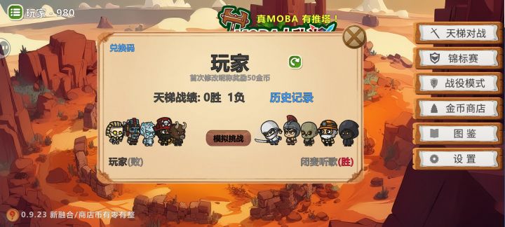 天梯在10回合之前获胜,并选择挑战高塔,剩余回合就会跳过战斗直接进入商店。这种情况下,商店刷新价格没有重置,一直保持2元,这样就损失了金币