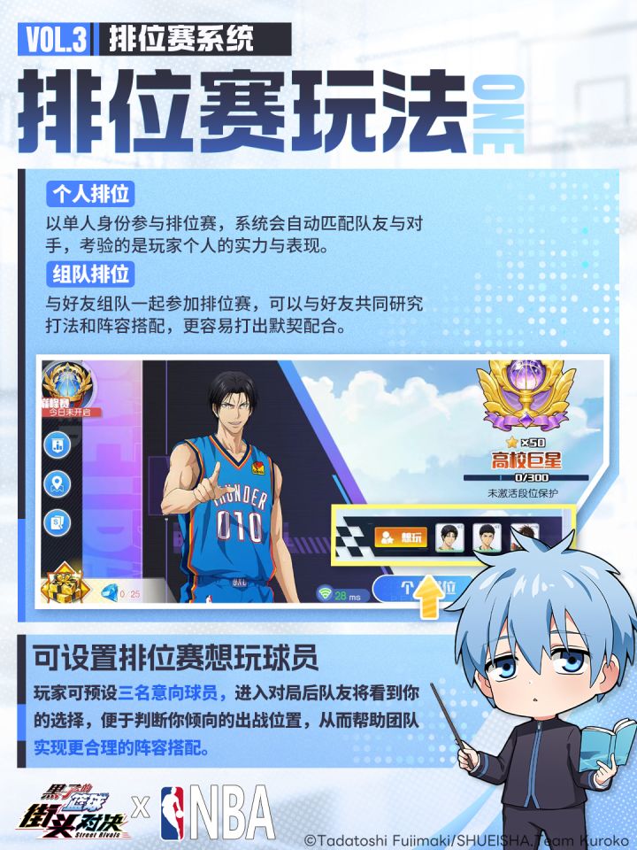 渴望证明个人实力,还是想与兄弟并肩作战?排位赛场,等你来战!预设出战核心,冲击ZONE之王者,制霸巅峰赛区,收割赛季豪礼~冲击高段位,还有机会赢取【高尾和成-NBA雷霆】联动皮肤哦!>>> 即刻查看排位赛玩法指南,开启你的称霸之路吧!━━━━━━━━━━━━━━━━━━━【下载渠道】▸官方下载页:https://kuroko.dyyfgame.com▸App Store下载页:htt