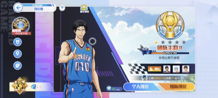 被资本做局了,早上上的2下午掉到3,然后现在重回2,还是得用牢青,不过官方能不能告诉我,为什么我玩牢青和辛男一堆大空位给我框框铁呢,然后对面各种顶,最主要的还是数值也没多离谱啊#黑子的篮球街头对决