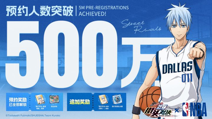 《黑子的篮球:街头对决》预约突破500万!快来抽好礼!