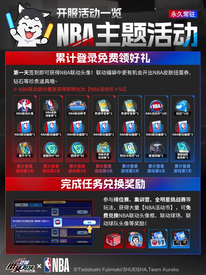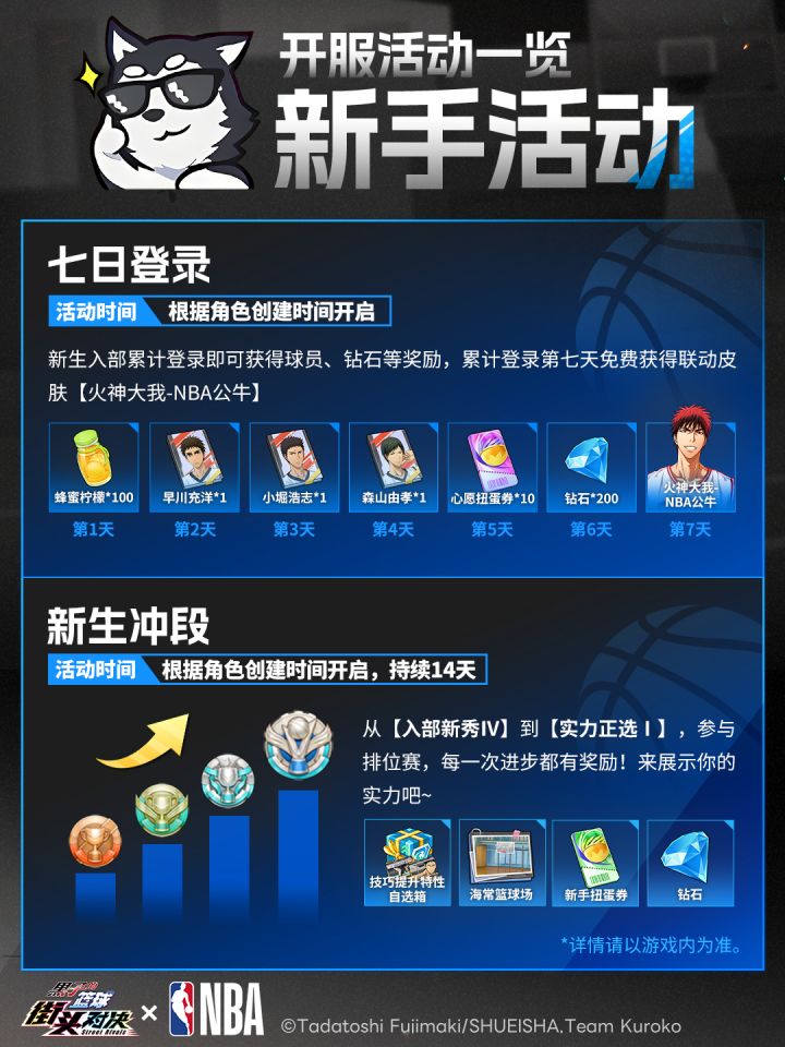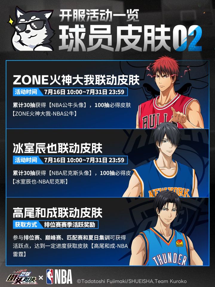 《黑子的篮球:街头对决》明日开服,开服活动一览先行奉上!▸ZONE火神大我限时登场,还有奇迹的时代心愿球员等你获取!▸火神大我&冰室辰也NBA联动头像、皮肤限时登场,多种常驻皮肤不容错过!▸签到即领NBA联动头像+福袋!体验多种玩法免费兑换专属球场、头像框!▸七日登陆好礼不停!冲段再领海量资源速成战力!—————————————————⬇️预下载现已开放!期待与各位社员在球场相遇!▸