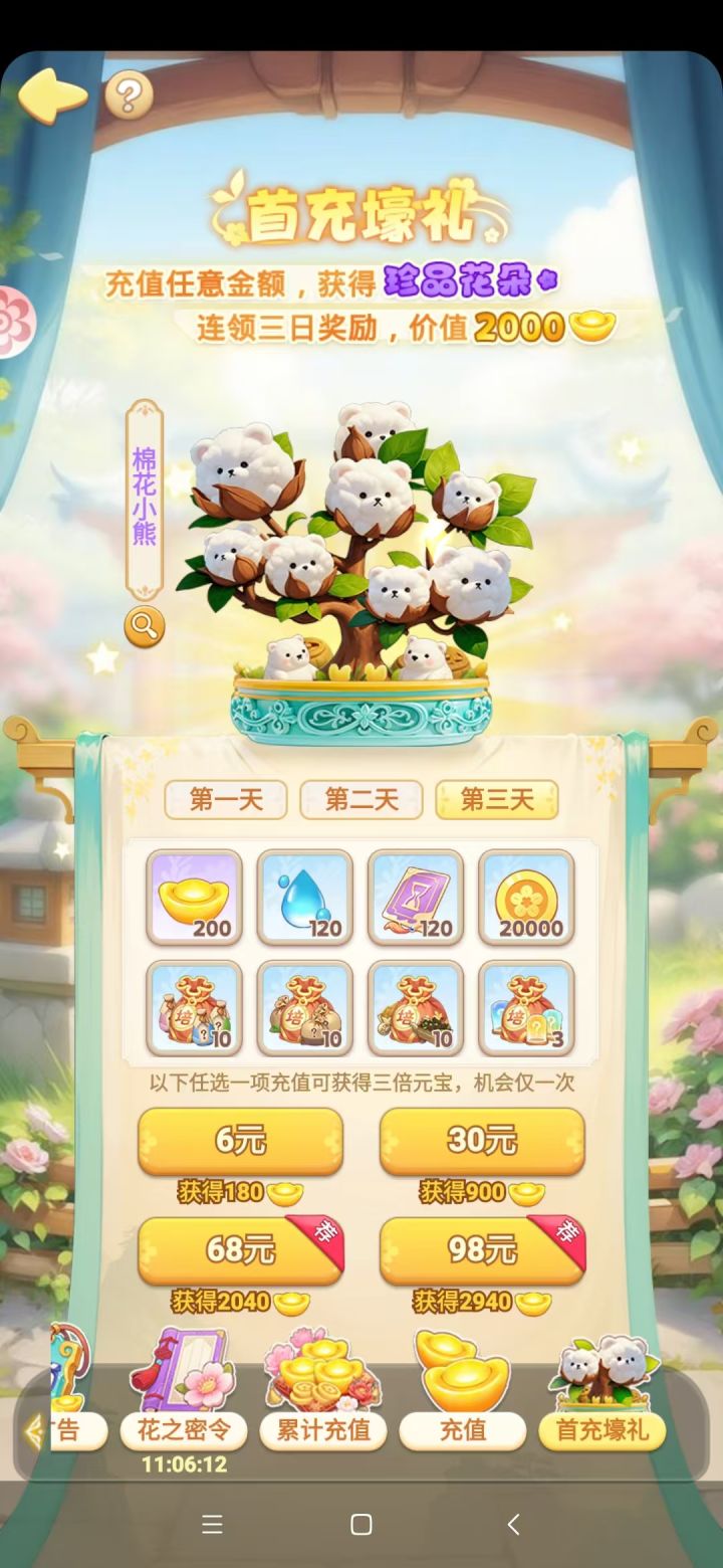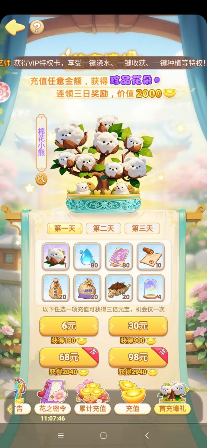 7天进度汇报:31级,微氪:6块免广+30vip+18:金币包(后悔了,可以不买的)+10元限时包(也后悔了,可以不买的)1、等级控制:在升30级之前,我以为等级没有什么影响,升级了以后发现,影响还是有的:比如特供船花朵数量从300→400,如果该花库存量很少,且当时在种的是收获时间很长的花(比如轮转冬青或粉红木槿花);顾客订单出现了新花瓶,造成退单率猛然增高,严重卡任务。*退单率:指顾客