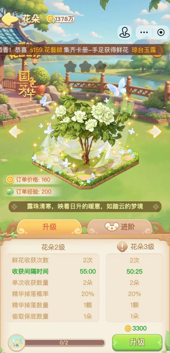 重要提醒:记得看广告开双倍!不要急着领花坊的任何花瓶!好友加满,常看常偷!公会记得种花收花!(种花艺收益最高中时长最长的,分享最贵的)公会币不要升级种植!去公会商店每天换材料!零氪不要过快升级!升得越快,急需培养等级新花,否则容易卡订单,就导致容易消耗元宝去买材料!所以要控经验!多去材料商店买材料!花架上架:一直做最高价的卖!记得在双倍时间领取或下架!居民订单(订单板):控等级的每