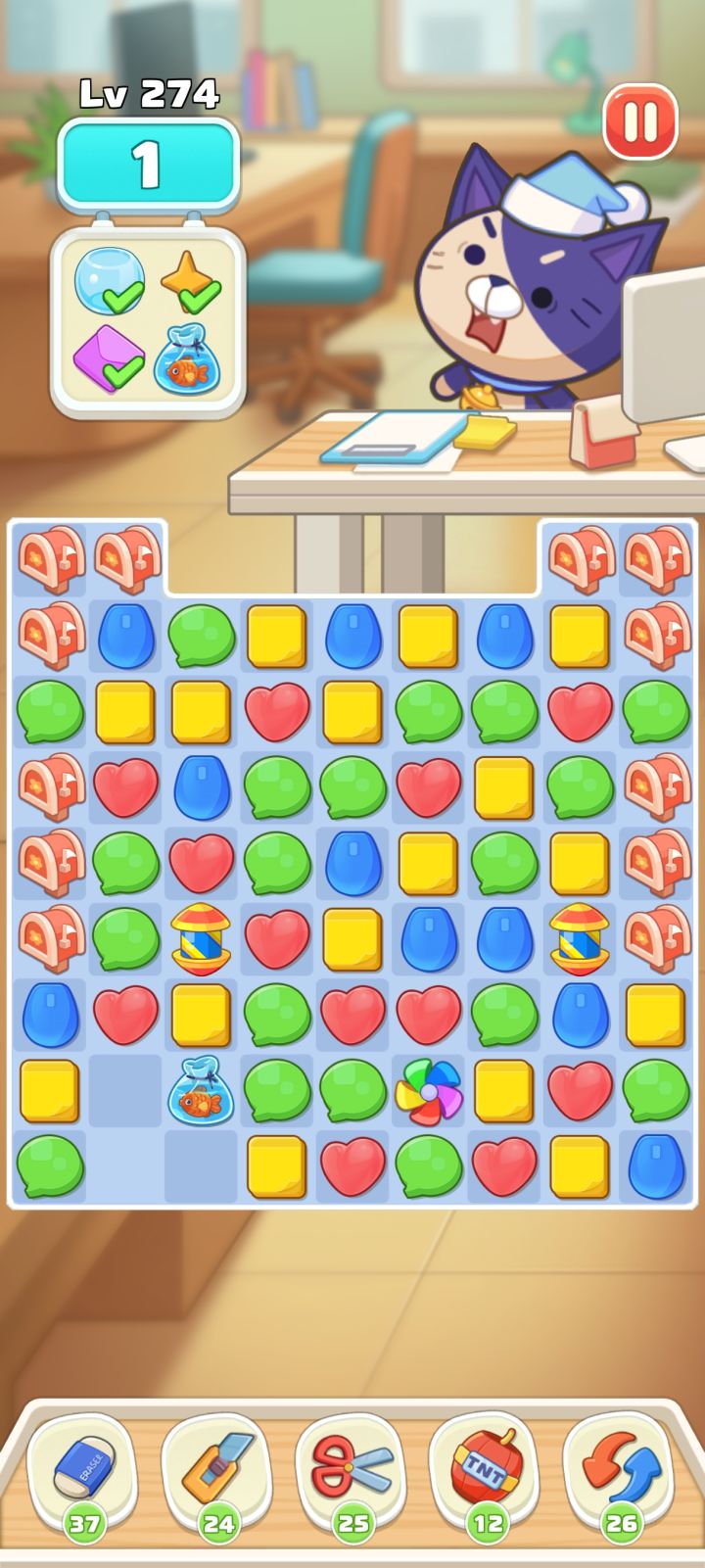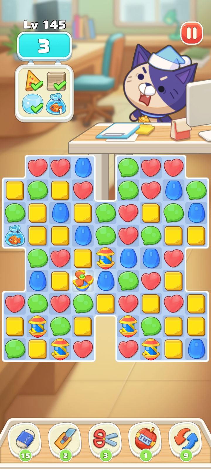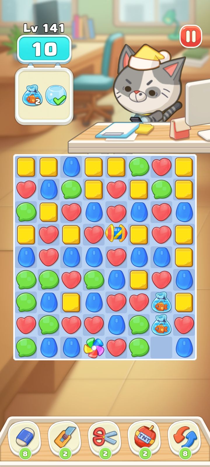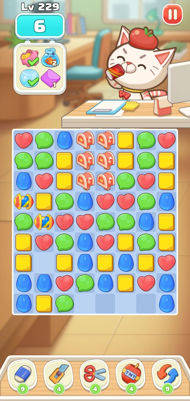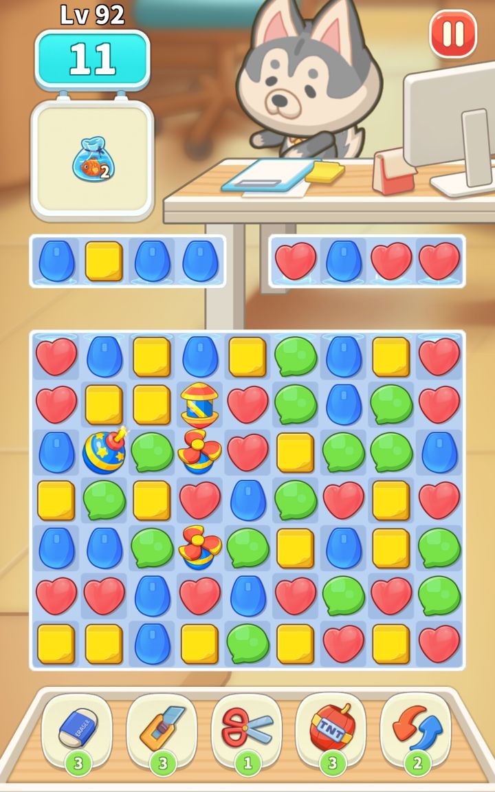 🐟在这个位置消除该列,不能使🐟下来,消除🐟列下面的是隔壁补。没有方法让鱼下来....试过炸弹也不行...