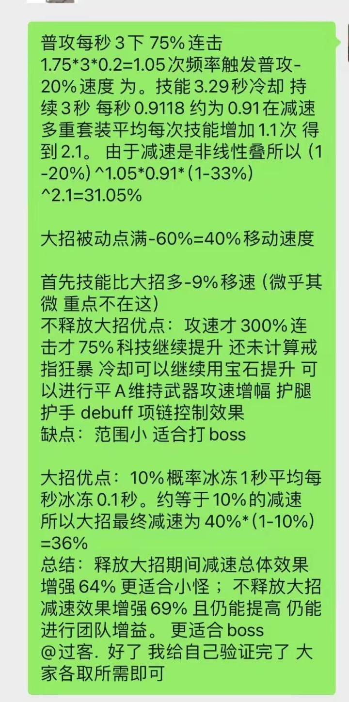 3转前冰法是否选择多重冷却套不加点大招对我来说是否为更优选择?大招:施法期间的效果为全屏每秒60%减速(不可提升)+10%冰冻(0.1秒冰冻/秒)+30%攻速减少技能:范围造成21%减速(可提升),20%攻速减少持续2秒(若有觉醒则还有50%造成20%概率1,5秒冰冻[0.15秒冰冻/次技能])普攻:20%概率减速目标20%持续2秒在未3转的情况下冰法释放大招的期间无法进行技能和普攻。个