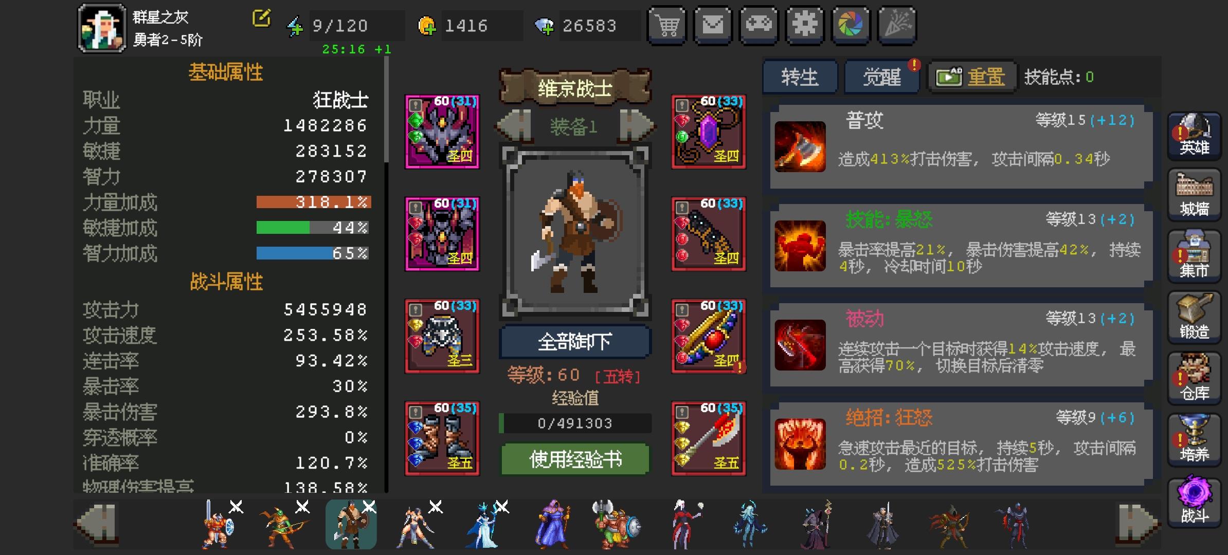 通用辅助游侠,火法和维京都适合,套装选连击狂怒,我测试的我是连击狂怒伤害更高,也可以带连击讯影(游侠普攻只需要点到10级)装备方面头盔还是老朋友傲法头盔,神化每秒0.8怒气,洗练是概率减速加满血攻速,宝石选择蓝宝石或者绿宝石(根据自身连击调整),一转圣化准确率盔甲选择支配或者守护,神化选择加准确,洗练洗概率迟缓加概率减速,不需要宝石,转生圣化全队属性护腿选择支配护腿,神化选择放技能加1怒气,