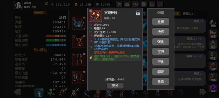 冰风分为两个阶段,有专属的冰风和没专属的冰风,没有专属的时候我个人感觉是不如锤子的哈,有专属之后的冰风是质变,超强控制。首先讲一下套装怎么搭配,我这里选择的是连击讯影,我测试的讯影更稳定一下,也可以用连击多重。装备这边头盔我们后期连击够了(进图之后够不够一百,看的方法在倒数第二张图片)首选傲法头盔,连击不够就选支配头盔或者领主之冠,傲法头盔是性价比非常高的一件装备,连击溢出之后第一个换这个装备,
