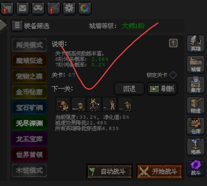 前言:大家好,我是清秋,我作为这款游戏的零氪玩家,花费了大部分时间来体验这款游戏,现在的我也差不多掌握了这款游戏的一些攻略经验,并且我将要把本期的主要内容来分享给大家,让各位玩家更好的去冲刺游戏关卡的尽头!英雄的推荐名额:分别为(森林游侠、骑士、火岚、血刺、毒夫人、刺客)这几位英雄在游戏内一直陪伴到关卡尽头的英雄,在我眼中的强度也都是不错的,一路过来它们的出色表现我都是看到眼里的,所以我推