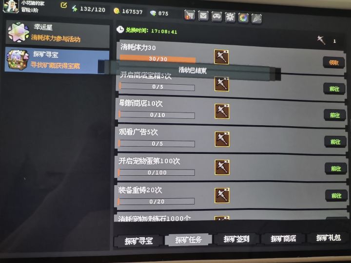 如图,我昨晚才开始玩的,这个探矿寻宝怎么就结束了,我刚玩啊👿👿👿