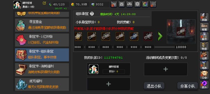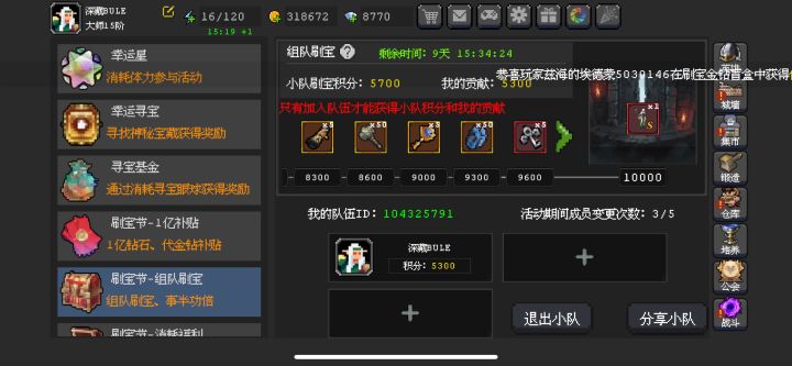 组队刷宝,活跃的加