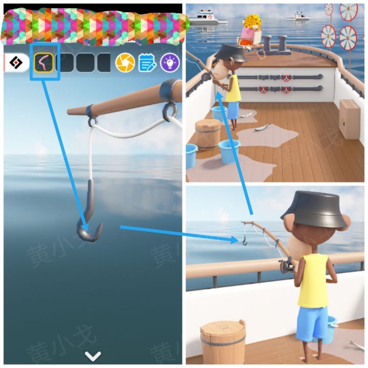 |[甲板]1.把【虫子】挂到猴子的鱼钩上2.查看猴子钓上来的救生圈,获得线索🔶救生圈被分为六个色块,注意色块的颜色及位置3.点击猴子旁边的木桶上的密码锁,根据[客舱]和[控制室]场景咖啡杯杯杯柄朝向和杯垫样式线索,调整密码锁🔷上-菱形、左和右-圆形、下-正方形🔶①[客舱]场景杯垫样式及咖啡杯杯柄朝向:圆形-左、菱形-上②[控制室]场景杯垫样式及咖啡杯杯柄朝向:圆形-右、正方形-下4