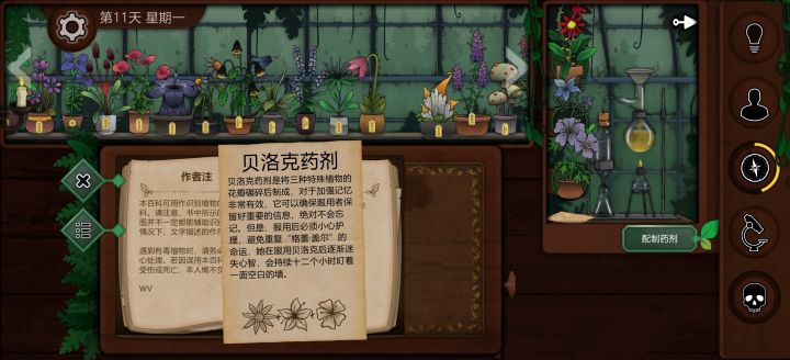 按照第16天的地点来区分结局:🌱【O9】需要五种植物:恶魔睡帽,疾网藤,寡妇哀,长羞草,古翠草📍第15天给【寡妇哀】→【结局1】:思曲(血肉横飞)📍第15天给【死人手指】→【结局2】:古翠草(沉睡的惮德鲁)🧪【A25】女儿巨石圆阵前置:第13天给图书馆员【海神之瓣】得到【控制药剂】配方:所罗门权杖➕女巫菲格➕农夫愁】📍第15天给面具女【寡妇哀】→第16天先用【疾网藤】再喝药剂→【结局