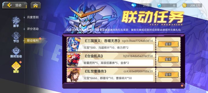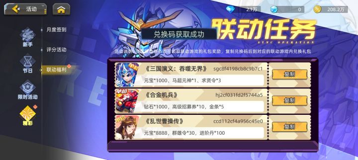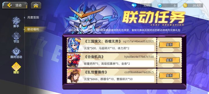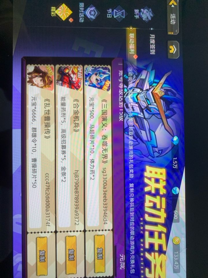 求一组乱世曹操传的口袋机甲联动兑换码,好人一生平安!