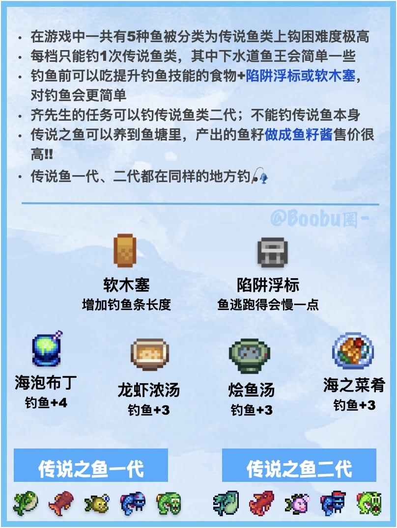 1️⃣在游戏中一共有5种鱼被分类为传说鱼类上钩困难度极高2️⃣每档只能钓1次传说鱼类,其中下水道鱼王会简单一些3️⃣钓鱼前可以吃提升钓鱼技能的食物+陷阱浮标或软木塞,对钓鱼会更简单4️⃣齐先生的任务可以钓传说鱼类二代;不能钓传说鱼本身5️⃣传说之鱼可以养到鱼塘里,产出的鱼籽做成鱼籽酱售价很高!!6️⃣传说鱼一代、二代都在同样的地方钓🎣#星露谷 #星露谷物语 #星露谷物语攻略 #发现好游