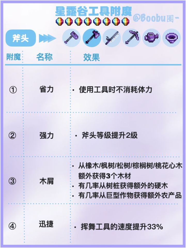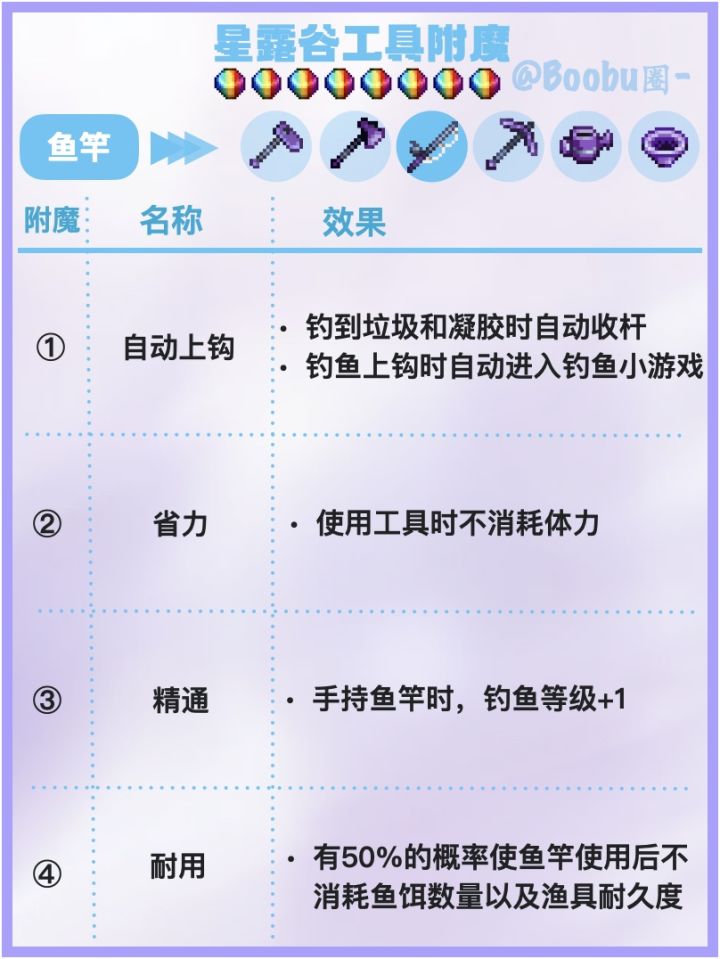 附魔需要花费一个五彩碎片和20个火山晶石🌋除了镰刀以外,所有工具都可以进行附魔不加mod的情况下每个工具只能有一个附魔✔️附魔的结果随机可以再消耗一个五彩碎片重新附魔重新附魔的结果与之前的两次附魔结果不相同附魔过的工具还是可以给克林特升级但是把带有“无底洞”附魔的喷壶给克林特升级时升级界面的容量条依然是蓝色的🩵(不会影响附魔)#星露谷 #星露谷物语 #星露谷物语攻略