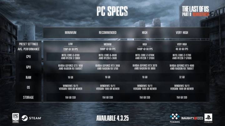 《最后生还者2》PC版配置一览