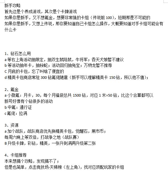 先来一波福利兑换码YXJYYU3P332RRMMGGBP⬆️3个卡包,几千辉光之尘900钻⬇️35H3LLE54X34KYAA55TX33NUXXR7VT如果想开600钻30抽的,可以登陆之后退出一下,然后再登录就有了活动商城,但除了专门想开这个的,不建议开,因为你开局兑换码给的钻可以买一个给的卡组,那样打起来会轻松很多当然,主要还是看自己#攻略