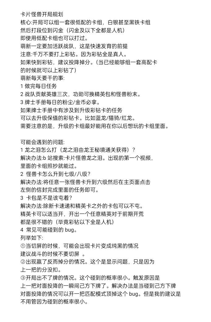 总是看到很多萌新因为前期资源使用不当而导致糟糕的游戏体验,因此写了一篇关于萌新开局的文章。(攒完资源后,组高配卡组可以直接照抄天梯前百或者微调。)