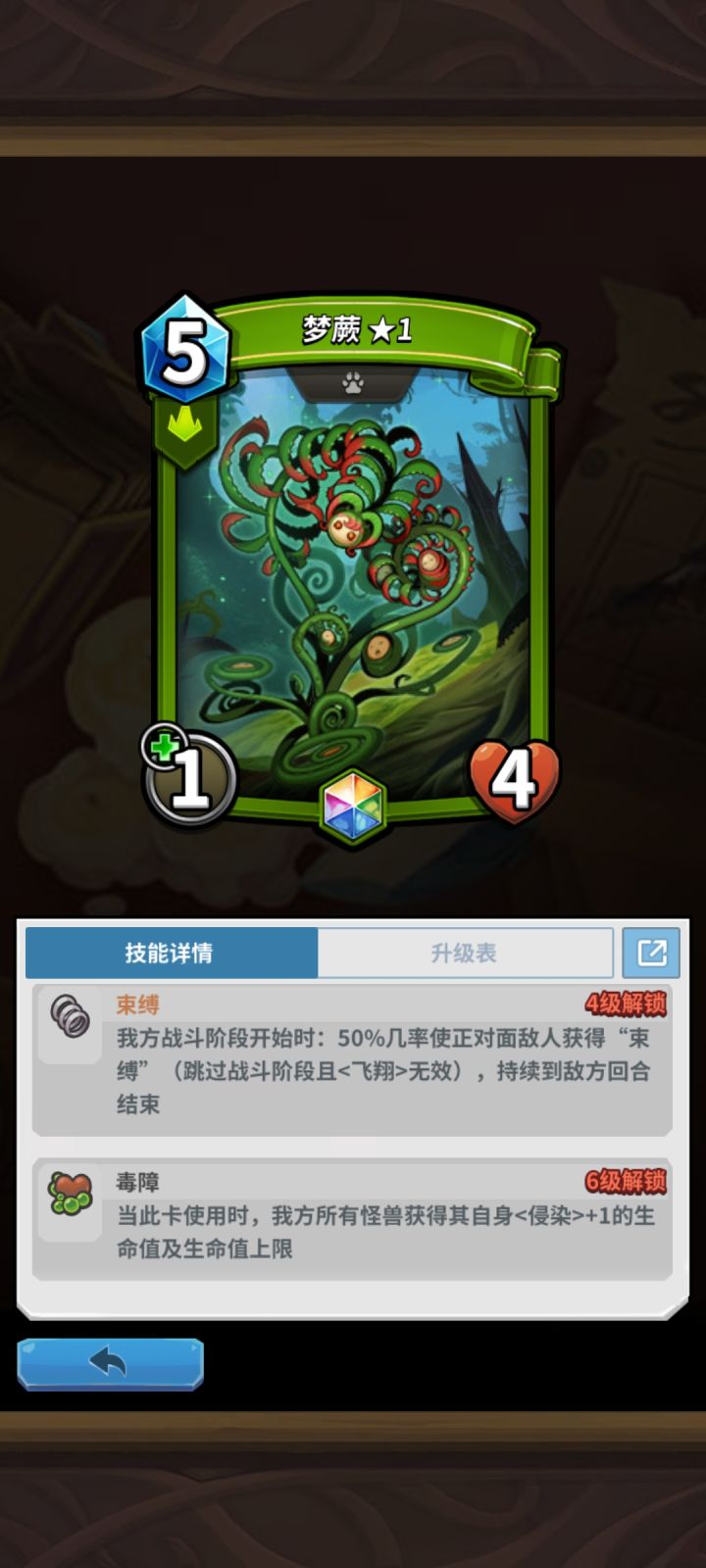 该论坛置顶有小猫攻略导航,也可以点我头像查看我往期帖子。你需要的攻略都在这里。这里给大家介绍一下精英卡强度一、罪源树人 👉简介:被认为毒爆的救星,不过目前没有看到完备配置,不推荐单独带一套卡组,定位:辅助、肉盾👉攻击👉爆发❤️💔(技能毒爆打一套)👉防御❤️❤️❤️💔(血量很优秀,不过没防御技能)👉配合❤️❤️❤️❤️(跟毒爆队友打配合不错)👉嘲讽❤️(瘟疫有一定嘲讽能力)👐