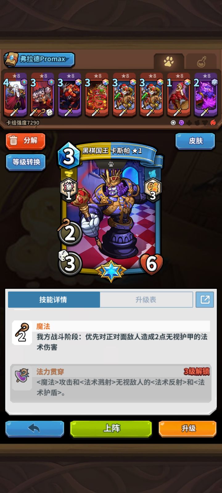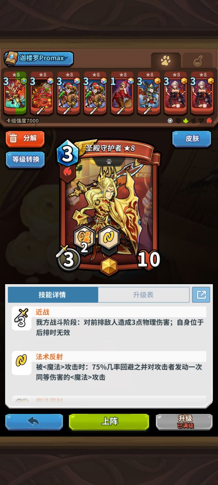 T1:白泽、白雪、肥遗、迦楼罗、洛克、哈比、苏纳克、弗拉德T1.5:白雪、青蛙、猿吉、灰姑娘(引领一派、不可或缺、强度保值、新手初始没有别玩)T2.1:苏、鹿、爱丽(自成一派)T2.2:黑胡子、萌萌、奥克拖、国王、小红帽、爱丽丝、天魔甲(同色辅助、同色系没有强度降档)T3:艾尔莎、占星仪、艾斯、麦克斯(同色辅助,有替代品)T4:赫卡(仓库吃灰)觉醒:T1:游侠、红龙、恶魔领