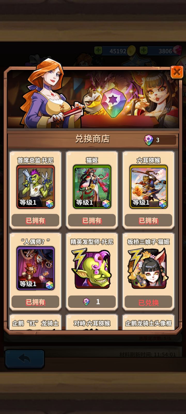 兑换企鹅时候发现没兑换企鹅龙骑士的格子,已拥有珍兽也没企鹅