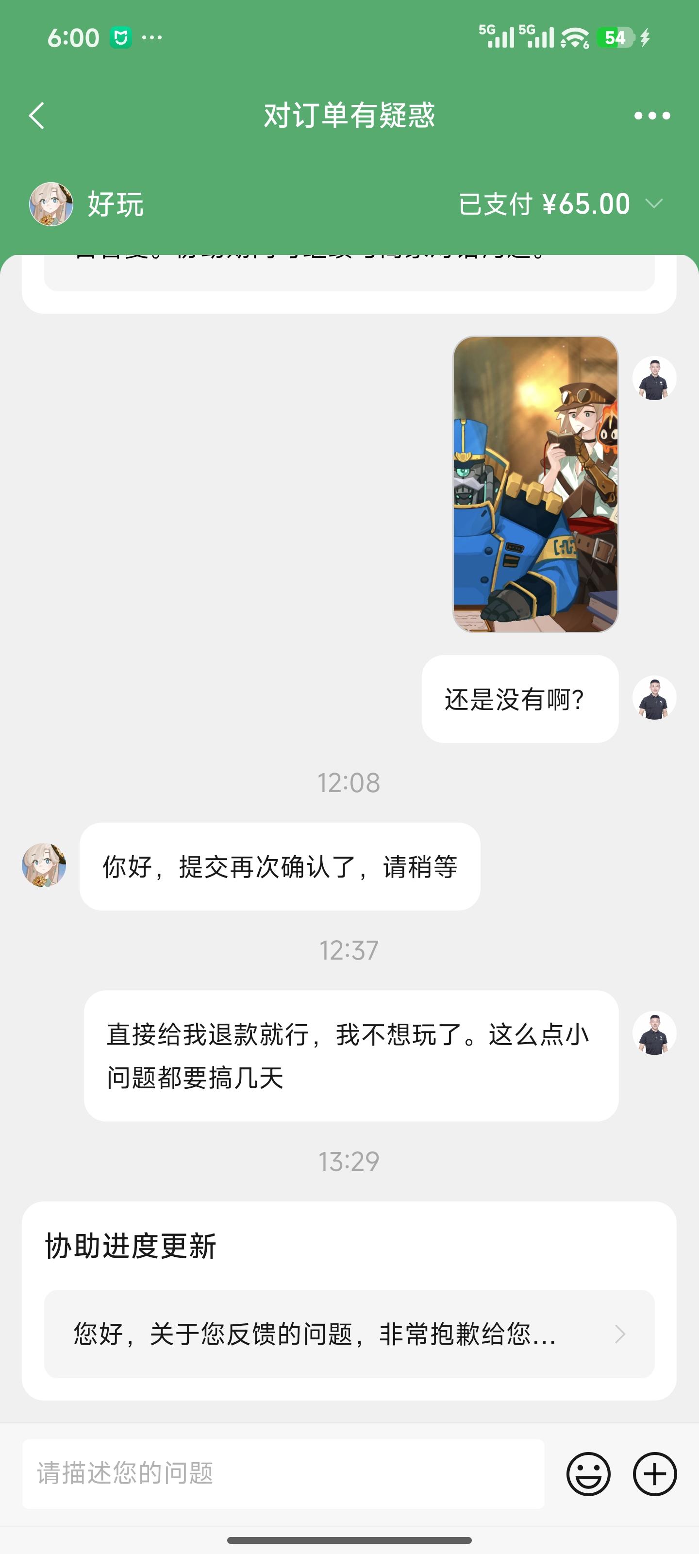 这破B游戏,弹窗非得等时间,说那就充个65的命运契约免除等待时间吧。老不到账,客服说了两次到账,但是实际还是没有。这都过了几天了,让他们退费又半天不来气,恶心人