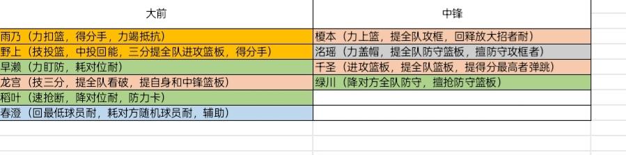 要想打好本次杯赛,首先要了解本次杯赛的特殊环境,海风球场:比赛最后三分钟体能消耗加剧能量回复加快,无疑是强调末节攻防。因此阵容中的火力输出,奶妈续航就显得尤为重要。力量意识球商三风格强化以及球队强化则是对于球员的选择上进行了进一步的限制,中锋姚明夏本,大前春程早濑野上小前雨濑川,澪奈,控卫清水这几名球员是可以吃满本次杯赛所有buff的,围绕这几名球员作为建队基石,再确保每队都有一名奶妈,那么大致上