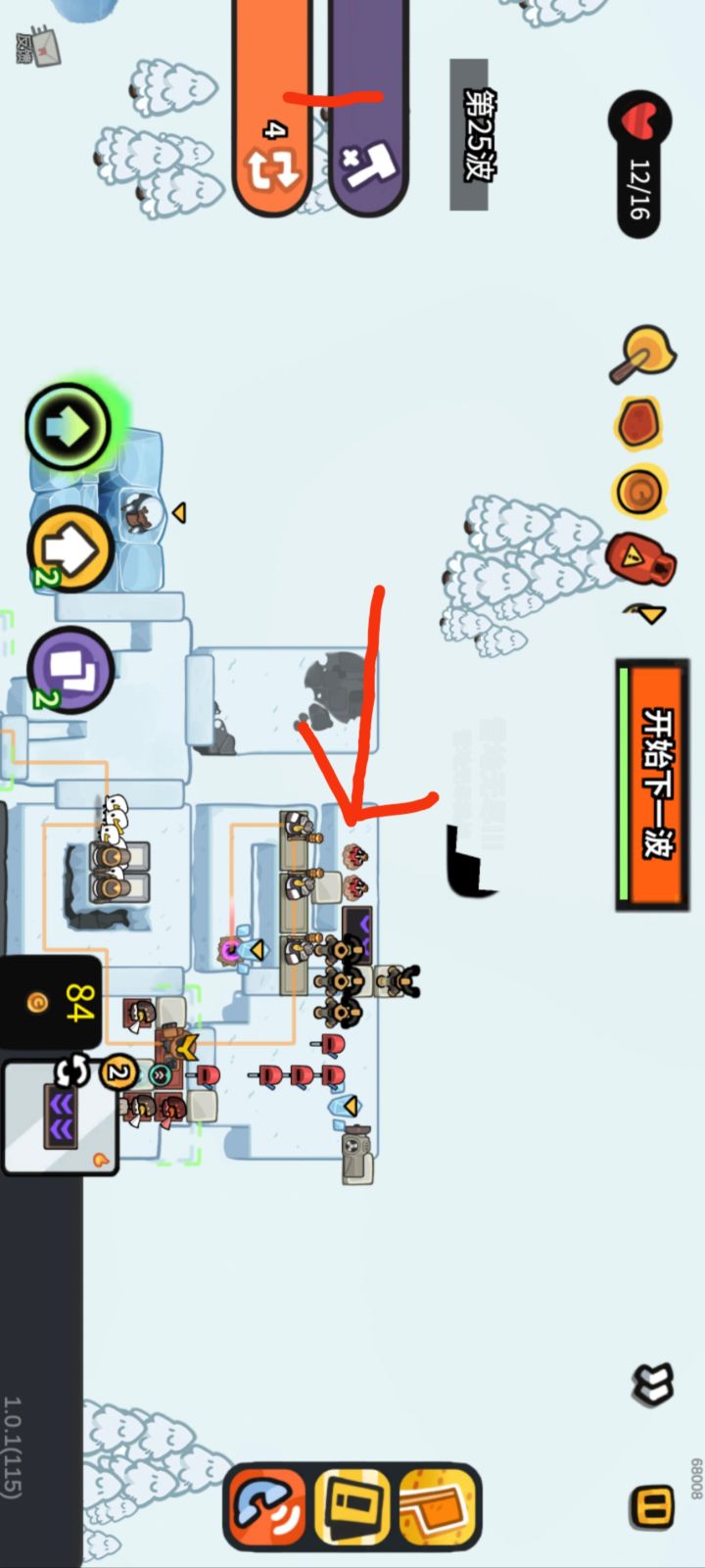 在5波波次结算的时候瞬间释放自爆会把那部分的兵直接卡没,甚至不会结算给塔,直接从游戏除外了。当然也有可能是拉着自爆技能进结算,因为会进入时停选增益,导致兵被卡掉了。
