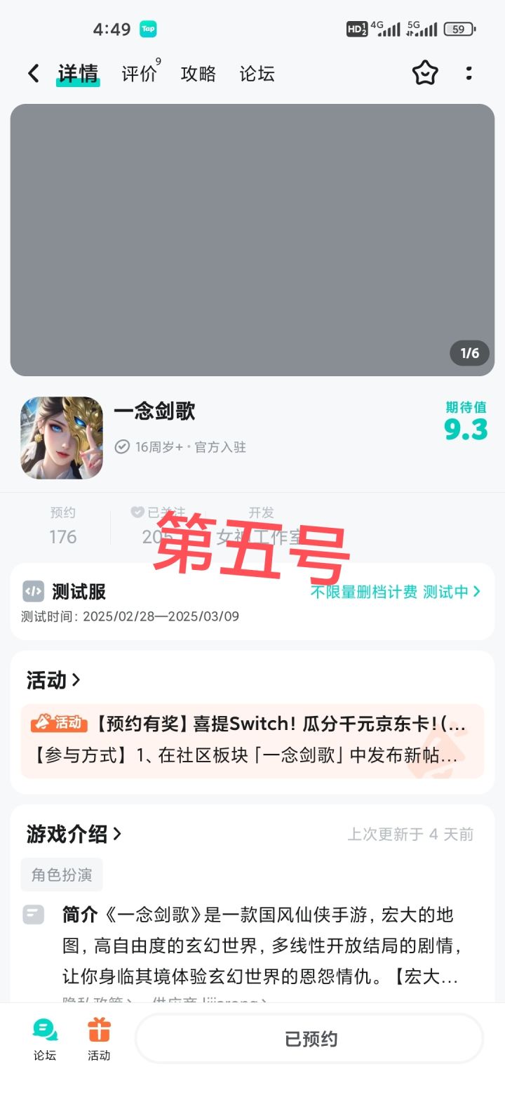 #一念剑歌 已预约