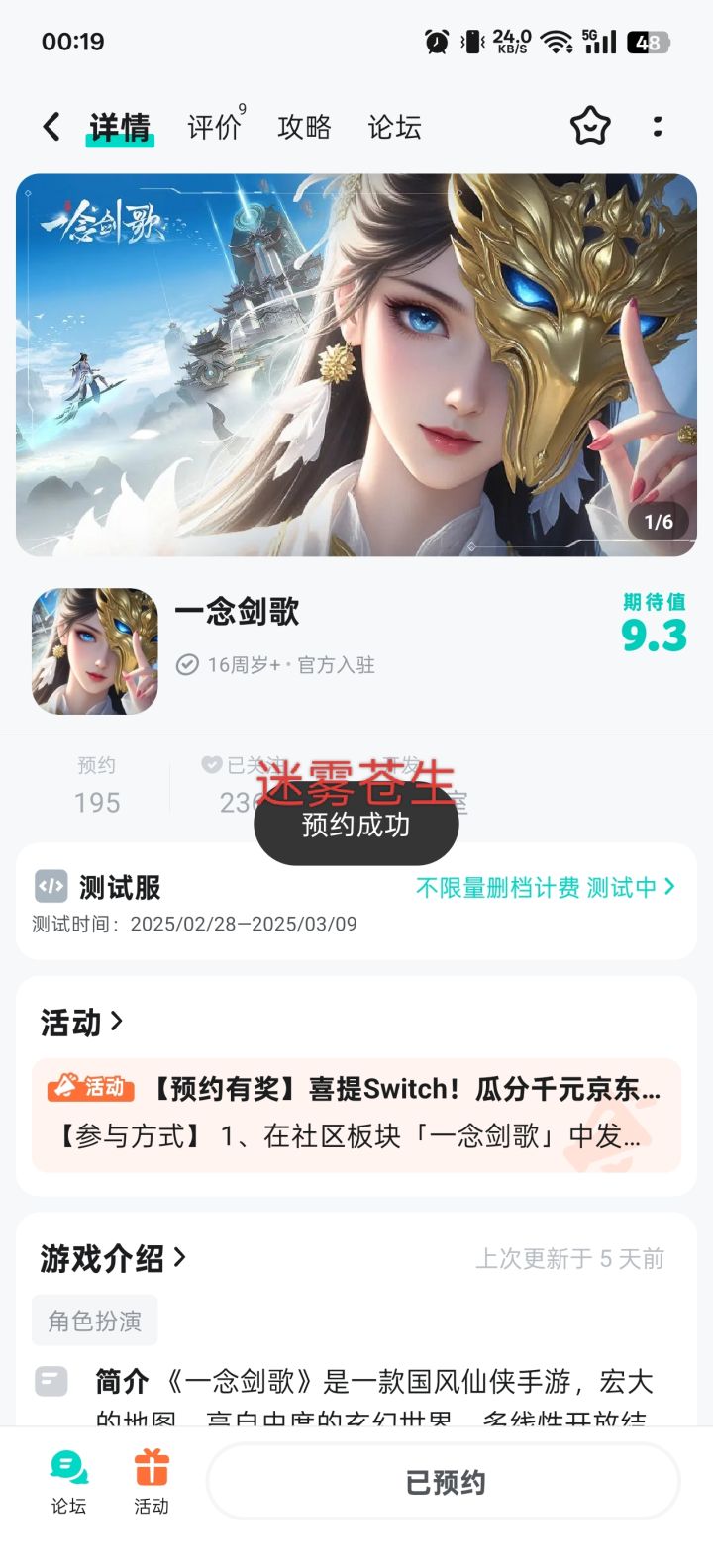 已预约#一念剑歌